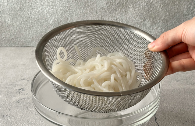 全体が解れてきたら、軽くお箸で混ぜ完全に解れたらお湯を切ります。